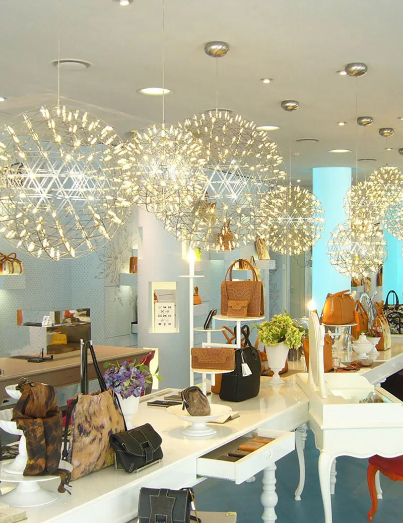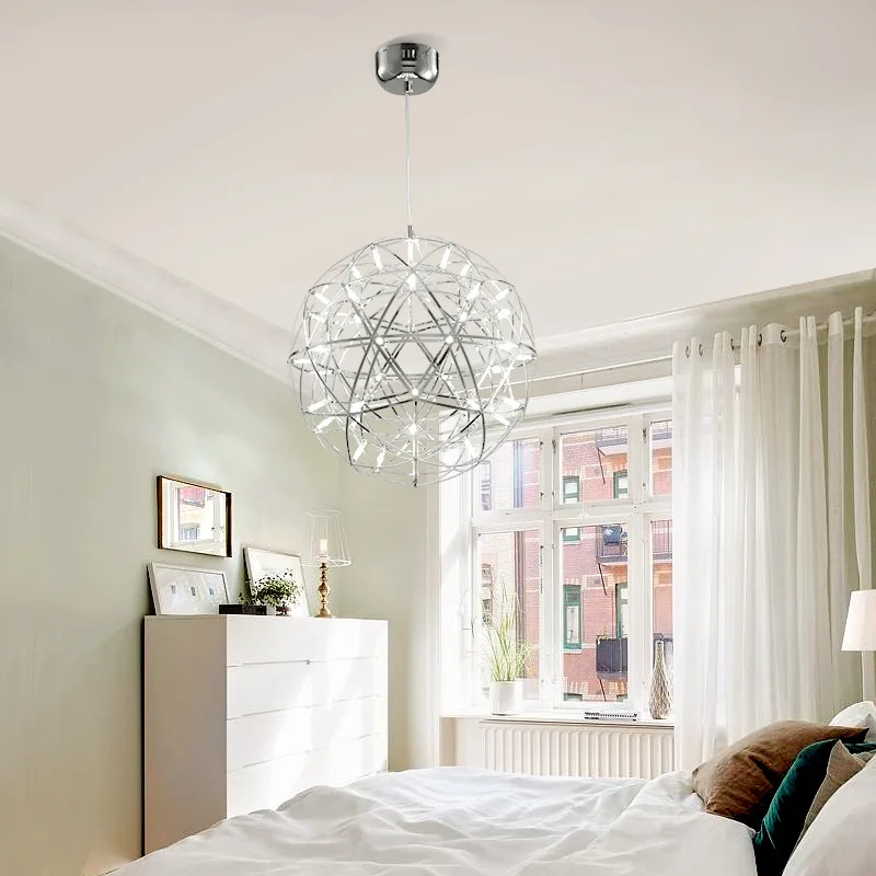 Elevate your space with this modern firework LED pendant light, featuring a stunning Italian-inspired stainless steel design and brilliant energy-saving SMD LED bulbs. The adjustable steel cables allow customizable height, while the remote control dimming lets you set the perfect ambiance in warm, cool, or neutral light. Available in Silver, Gold, Black, and White, this luxury ceiling light suits living rooms, bedrooms, dining areas, or hotel interiors. Built for durability with premium plating and polished finishes, universal voltage (90–260V), and 2-year warranty.